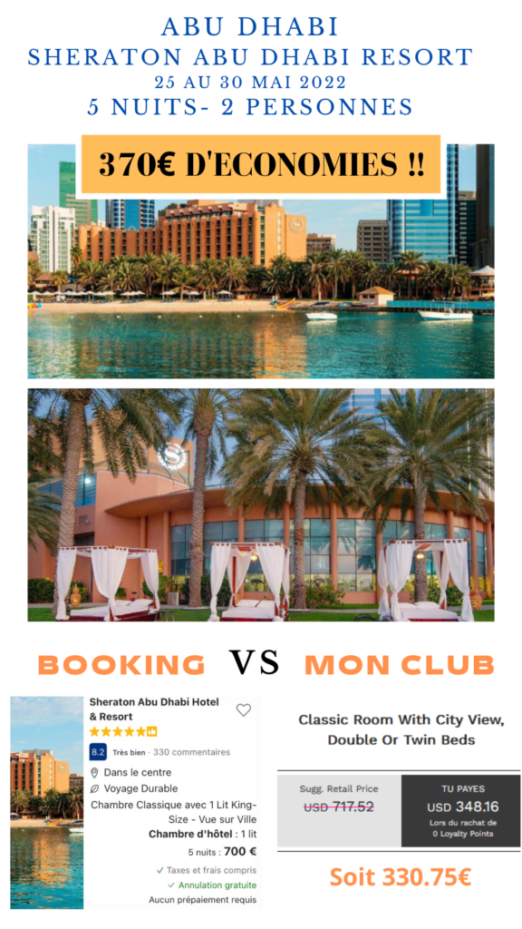 Grâce à mon Club de voyage nous avons économisé 370€ et oui !!! Nous avons payé 330€ au lieu de 700€ pour 5 nuits/2 personnes, whatelse !!
